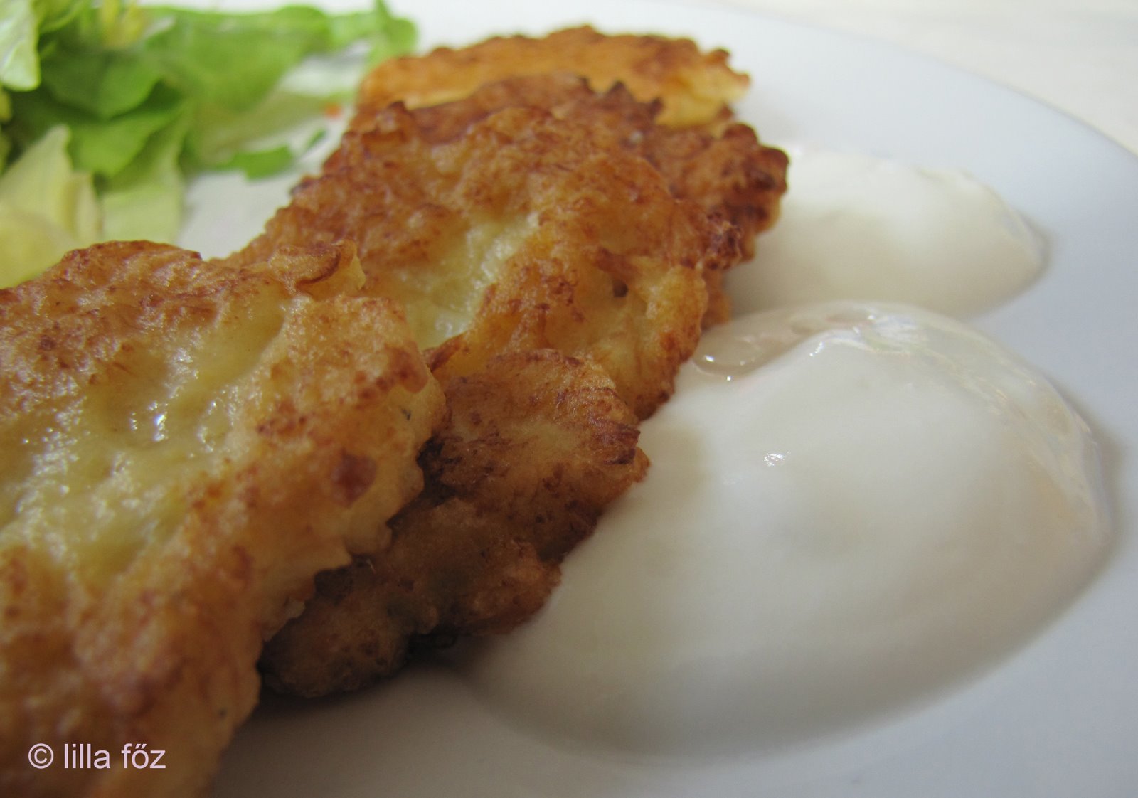 A rózsáira szedett karfiolt 10 perc alatt megfőzöm sós, korianderes vízben. Lecsöpögtetem és hagyom megszáradni. Egy tálban villával összetöröm (nem kell homogén masszát csinálni belőle), hozzáadoma két tojást, a fűszereket, az átnyomott fokhagymát, a most általam elfelejtett hozzávalókat, és anyni lisztet, hogy galuska sűrűségű masszát kapjak. ez nekem ma kb 5 evőkanál liszt lehetett. Egy serpenyőben olajat hevítek – nem kell ujjnyi vastagon álljon, de azért vonja be a serpenyő alját, a közepét is. Kiskanállal kis kupacot rakok, lelapítom és aranybarnára sütöm. Két kiskanállal megfordítom, és megsütöm a másik oldalukat is. Salátával és tejföllel tálalom.