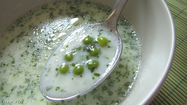 Azt hiszem ez a fajta borsóleves nem túl általános, nálunk azonban ez az egyedüli ismert. Amiben van már répa stb. az zöldségleves. A borsóleves csak borsóból készül. Most még mirelitből főztem, nemsokára jön a friss zsenge idei borsó, amiből még finomabb. A tej és a borsó nagyszerű párost alkotnak.