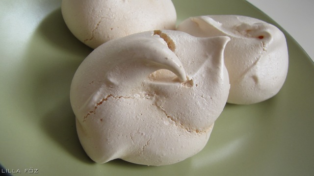 Már volt 4 tojásfehérjém a fagyasztóban, nem akartam a csokis kekszből maradó 3-at is betenni (icipici az egész, és ne tojásfehérjével legyen tele). Úgyhogy a legegyszerűbb tojásfehérje-felhasználási módhoz folyamodtam: habcsókot sütöttem. Amúgy is kigondoltam, hogy itt az eperérés, ’eton mess’-t fogok csinálni. Ahhoz, pedig kell 1-2 darab. Egyszerűbb sütni egy adagot, mint cukrászda után rohangálni és venni.