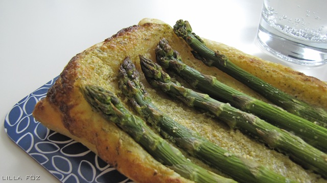 Célszerű előnyújtott leveles tésztát használni, az enyém ráadásul 6 darabban volt, így nem kellett se vagdosni, se nyújtani. Ha egy darabban van, akkor vágjuk 4-8 darabba, az egyik oldaluk legyen kb. olyan hosszú, mint a spárga megtisztítva, a másik oldal szabadon választott. A spárgát megmosom, levágom a fás aljukat, és pár cm-en megpucolom, ez valószínűleg fölösleges, de a fás zöldségek nagyon el tudják venni a kedvemet, úgyhogy óvatos vagyok inkább. A mascarponet összekeverem a pestoval, megkenem vele a tésztalapokat, ráfektetem a spárga sípokat, és megszórom reszelt parmezánnal. Előmelegített sütőben, 200 fokon 20 perc alatt megsütöm.