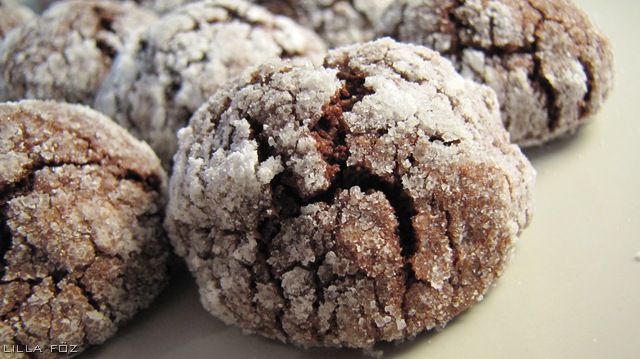 A vajat és a csokoládét mikróban megolvasztom, majd alaposan kikeverem. A tojást egy villával felverem a cukorral és a rummal. A lisztet összekeverem a kókuszreszelékkel, a sütőporral és a sóval. Először a tojásos-, majd a lisztes keveréket adtam a csokoládéhoz. Alaposan összekeverem (elég híg!), és minimum két órára a hűtőbe teszem. A sütőt 180 fokra előmelegítem és egy tepsit sütőpapírral bélelek ki. Egy-egy tálkába kristály- és porcukrot teszek. Kiveszem a hűtőből a tésztát, és gyorsan egy kiskanállal és az ujjaim hegyével golyókat (kisebb diónyikat) formálok belőle. A golyókat előbb a kristály-, majd a porcukorban megforgatom, és a tepsibe teszem (kb. 4 cm legyen két golyó között). 12 percig sütöm. A belseje puha, a külseje ropogós. Nagyon finom, érdemes dupla adaggal indítani.