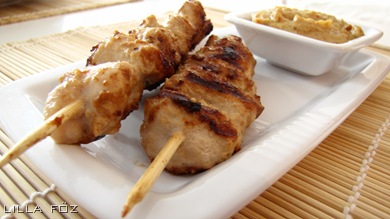 Újabb kókusztejes-mogyoróvajas fogás a pár héttel ezelőtti thai kókusztejes-csilis csirke után. A satay (szaté) Délkelet-Ázsiában mindenhol kedvelt, a legnépszerűbb ez a mogyorós változat. Sóra egyáltalán nem volt szükség, a mogyoró és a szójaszósz elég sót tartalmaz. A húst grillen, grillserpenyőben, vagy vékonyan kiolajozott teflonserpenyőben is meg lehet sütni.