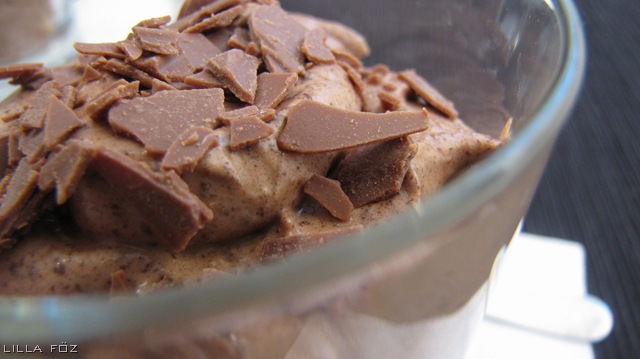 A tejszínt felforralom a cukorral és az étcsokoládéval, és egy éjszakára (vagy egy egész napra) hűtőbe teszem. Tálalás előtt kemény habbá verem. A poharak, vagy tálkák aljába összetört amaretti szórok, meglocsolom a rummal, rákanalazom a csokoládékrémet, és csokoládélapocskákkal megszórva tálalom.