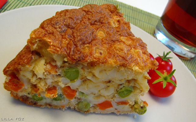 A többi felfújttal ellentétben nem csak frissen jó, nyugodtan lehet másnap ebédre vinni, és akár hidegen is fogyasztható, ezért leginkább a quiche-ek töltelékére hasonlít. Bármilyen zöldségkeveréket használhatunk hozzá, nekem kukorica-borsó-répa összeállítású volt.