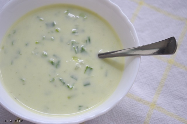 Az újhagymát felkarikázom, és pár percig párolom a felhevített olajban. Ezután megszórom a liszttel, elkeverem, és kb. 1 perc pirítás után felöntöm az erőlevessel és a tejszínnel. Gyakori keverés mellett felforralom, kicsit megborsozom, ha szükséges megsózom, és melegen tálalom.