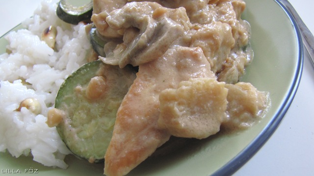 Szeretem az ázsiai serpenyős csirkeételeket, sok zöldség van bennük, és általában tartalmaznak az európai ízekhez képest szokatlan csavart. Sokszor különleges hozzávalóra sincsen szükség, ehhez az ételhez csak mogyoróvaj, szezámolaj és szójaszósz kellett, egyik sem beszerezhetetlen különlegesség, a mogyoróvaj ráadásul Európában is kedvelt, nem csak a tengerentúlon és Ázsiában. Pirított földimogyoróval kevert kínai tésztát akartam köretként készíteni, rajtam kívülálló okok miatt ez végül nem jött össze (zsizsik a szekrényben, és az ázsiai tésztában), így legalább kiderült, hogy a rizshez is remekül passzol a mogyoró.