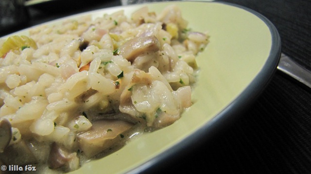 A rizottó az egyik kedvenc ételem, gyorsan elkészül, és mindig az évszaknak megfelelőn lehet variálni. És nem utolsósorban nem igényel sem sok edényt, sem különleges konyhai eszközöket. Ezért aztán kb. kéthetente egyszer az asztalra kerül, legutóbb épp gombával.