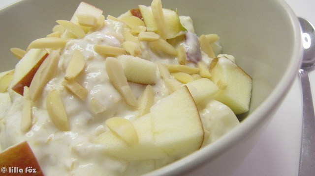 Tőlem szokatlan módon egy gyors és egészséges recept, mézzel, zabpehellyel, pár szem olajos maggal és gyümölccsel. Ezek közül a gyümölcs az, ami nem a kedvencem, de így még az alma és a körte is lecsúszik. Nulla százalékos joghurttal még inkább fogyókúra-barát, de engem elborzaszt a light joghurtoknak az összetétele, túl sok bennük a zselatin és egyéb nem oda való anyag – bár lehet, hogy rájuk kell fanyalodnom, ha gyorsítani akarom a fogyást.