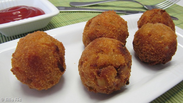 A csirkemellfilét és a póréhagymát nagyon apróra vágom, és összekeverem a tojással, a zsemlemorzsával, a fűszerekkel és annyi tejjel, hogy formázható legyen. A panírozáshoz egy tányérba ütöm a tojást, és a tejjel elkeverve villával kicsit felverem, egy másik tányérba pedig zsemlemorzsát szórok. A húsos masszából golyókat formázok, először a tojásban, majd a morzsában forgatom meg, és kb. másfél ujjnyi forró olajban, néhányszor megforgatva megsütöm. Salátával (és ketchuppel) tálalom.