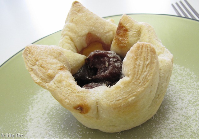 Kelt tésztás recepteket nézegettem, és borzasztóan megkívántam valamilyen péksüteményt, lehetőleg leveles tésztásat – hát hiába a hasábburgonya mellett ez a másik gyengém. Mivel pékség nincs a közelben, a közértek pékáru kínálata pedig több mint siralmas, nekem kellett kézbe venni az ügyet, és összedobni valamit az itthon található alapanyagokból – a heti bevásárlás előtt egy nappal ez már nem mindig egyszerű feladat.