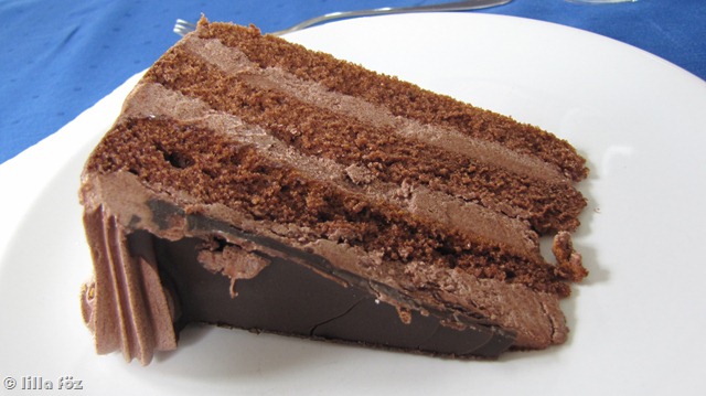 Már az első falatnál világos volt, hogy köszönőviszonyban sincs a múltkori trüffeltortával, amit egyesek szerint “semmi extra csokitorta”. Hát ez az elég szar csokitorta volt. Növényi szutyok, nem túl sok csokoládé (valami nem túl jó csoki vagy kakaópor volt benne). De jött még rosszabb is (bár attól semmi sem lesz jobb, hogy a többi még rosszabb).