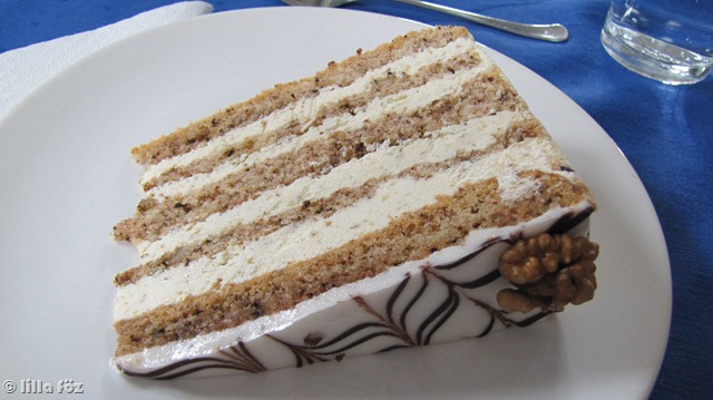 Évike a múltkor azt állította, hogy egy jó kis vajas krémre vágyik. Ma ezt megkapta, margarinos formában, és gyorsan felülírta a múltkori óhaját. Ezt ismét csak öten ettük (de Levi járt jól, hogy kimaradt belőle). A dió íz volt benne a leghalványabb, először nekem a gesztenyepürés gagyi sütőrum aroma tódult a számba, majd az utolsó falat legyűrése után fahéjas utóíz maradt. Elképesztően, iszonyatosan utálom a fahéja. fúj. És mit keres az Eszterházy tortában. Botrányosan szar volt. A múltkor az Eszterházy volt az egyik legfinomabb.