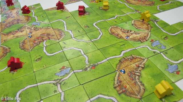A játék során kis terepkártyákat kell húzni, és a már lent lévőkhöz illeszteni. Ebből alakul ki egy várakkal, utakkal, kolostorokkal tarkított vidék, ahol a limitált számú bábuinkkal területeket, és ezáltal pontokat szerezhetünk. Tipikus német stílusú táblás játék, 2000-ben jelent meg, és 2001-ben elnyerte az év játéka díjat. Azóta rengeteg változata és kiegészítője jelent meg, ezekből nekünk is van néhány, azok majd a folytatásban jönnek szépen sorban.