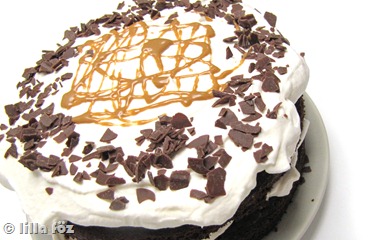 Nálunk a május tobzódás a tortákban (de csak most jutottam el addig, hogy a legutolsót posztoljam), sok (és egyre több) a májusi születésnap, ami egyre növekvő tortamennyiséget von maga után. Végigettünk mindenfélét, ez volt a legutolsó, a saját kis szülinapi tortám, ami roppant egyszerű, és gyorsan össze is lehet rakni, ami most különösen jól jött. A tejszínhabból álló krém túl egyszerűnek tűnhet, de a karamellöntettel nagyon jól kiegészítette a kakaós kevert tésztát.
