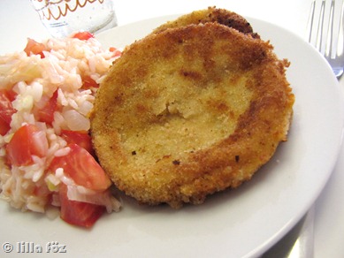 A sajtos babpogácsa a GoodFoodról van, kicsit persze kellett változtatni rajta, mert olyan babot nem találtam, mint amit a recept ír, és a sajtot lecseréltem soványabbra. Köretnek tök jó lett volna mellé a grillezett koktélparadicsom, de a napsütés elégtelen volta miatt a héten nem érett meg túl sok az erkélyen. Saláta meg csak ronda volt a boltban, úgyhogy főztem mellé egy kis paradicsomos rizst
