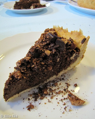Lehet, hogy soknak tűnhet 35 dkg csokoládé egyetlen, nem túl nagy 24 cm-es tortában, de nem az :-). Kell bele… Mondjuk minden hétvégén nem sütök ilyet, de hugi születésnapjára csak valami izmos csokis desszert kellett, mert évekig felolvastatta a fagyizóban a kínálatot, majd választott: csoki-csoki. A cél a laktózmentes torta volt, ez az amarettin elbukott, amilyet a boltban találtam, sajnos tartalmazott laktózt (nem tudom, hogy mindegyikben van-e, nem túrtam végig az összes áruház kínálatát). Persze lehet házilag is sütni, akkor az garantáltan tejcukor-mentes lesz. A torta többi része remekül sikerült margarinnal és laktózmentes tejjel és tejszínnel is.
