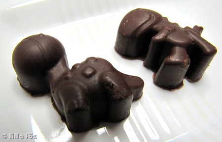 Még nászajándékként kaptunk Dorkától egy dinós szilikon bonbon-formát. Most jött el csak az ideje, hogy felavassam, mert Karácsony meg bonbon stb… pedig nem is ajándék lett belőle, csak mi eszegetjük két keksz között.