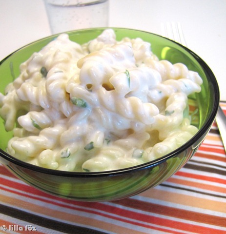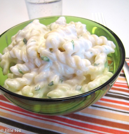 A török büfékben kértem régen a “gyros-tálat” joghurtos tésztával, aztán valahogy elfelejtettem ezt a köretet, míg valamelyik nap bevillant, hogy de jó, és simán tudok itthon csinálni. Vagy legalábbis valami nagyon hasonlót, mivel a “titkos” receptnek nem vagyok birtokában (de szerintem olyan lett, mint az emlékeimben van).