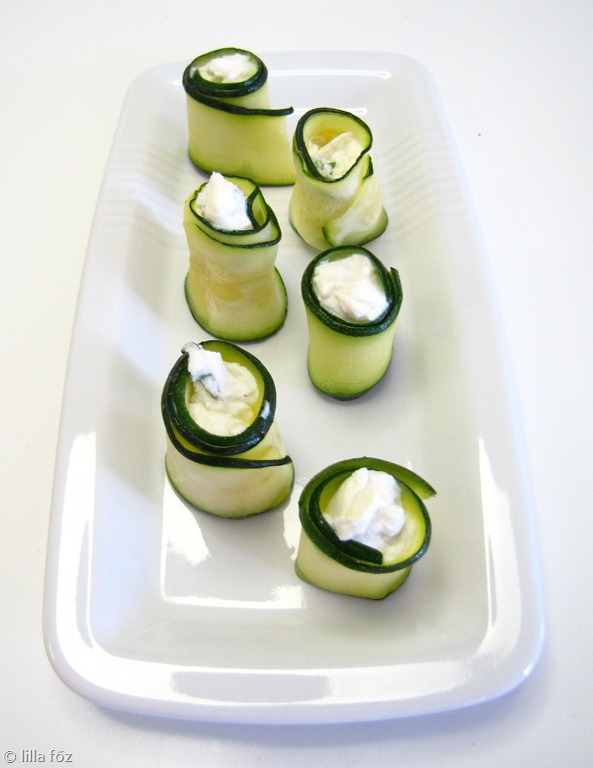A cukkinikat zöldséghámozóval szalagokra vágom, kiválasztom a szép egyformákat, egy tálba teszem, megsózom, meglocsolom egy kis olívaolajjal, összeforgatom, és fél órára beteszem a hűtőbe (a maradékot felhasználom máshoz, pl. krémleveshez). A ricottát összekeverem a citromlével, egy evőkanál olívaolajjal, sózom borsozom, és belevágok egy csokor bazsalikomot. Előveszem a cukkinit, minden szalag egyik végére teszek egy kiskanálnyi tölteléket, feltekerem és egy tányérra állítom. Tálalás előtt még meg lehet locsolni egy kis olívaolajjal és balzsamecettel.