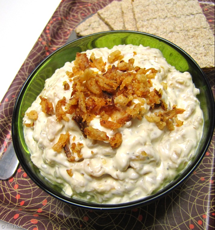 - a tetejére pirított hagyma (ez is előállítható házilag*, én IKEA-sat szórtam rá)