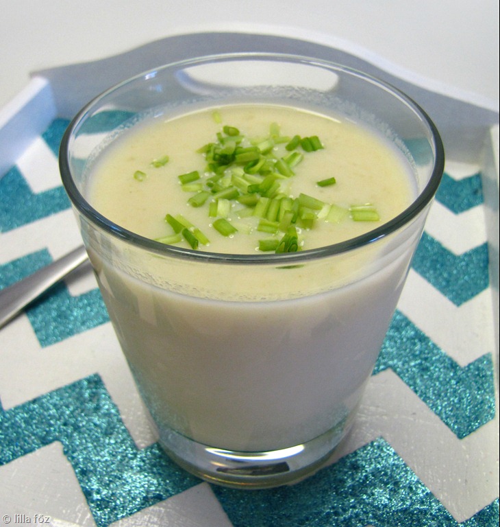A póréhagymát hosszában félbevágom, és felkarikázom, a burgonyát meghámozom és felkockázom. Az alaplevet a vizet, a pórét és a burgonyát egy fazékba teszem, kicsit megsózom, felforralom és 20-25 perc alatt puhára főzöm. Félreteszem hűlni, majd nagyon alaposan összeturmixolom. Addig kell turmixolni, amíg teljesen homogén lesz (ez és a tejszín együtt adja a szuper-selymes állagát). Végül belekeverem a tejszínt és behűtöm (2 óra-2 nap). Tálalás előtt ellenőrzöm a sűrűségét, és ha szükséges, adok még hozzá vizet, (hűtött) poharakba szedem, és a tetejét megszórom snidlinggel.