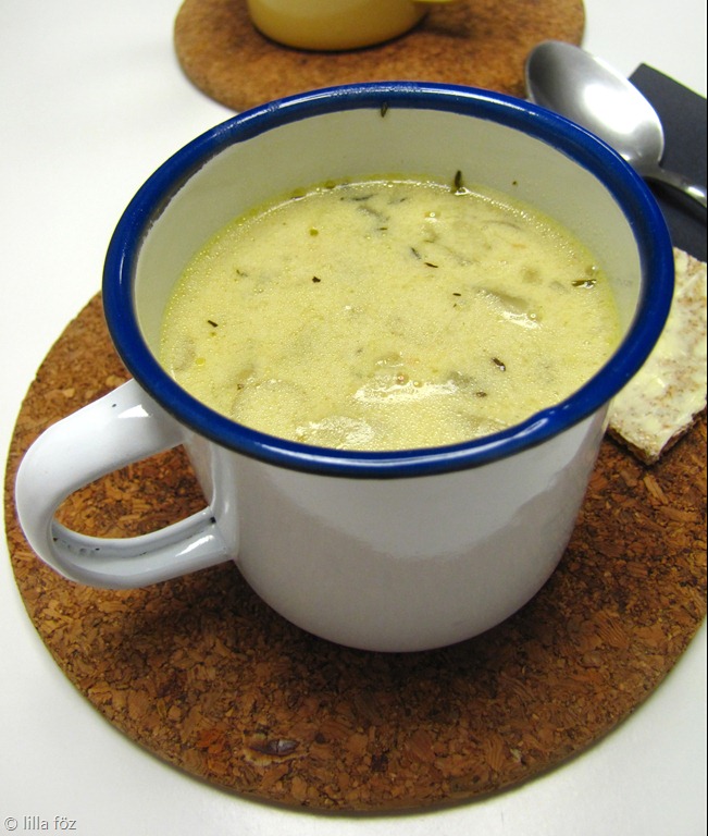 A hagymát megtisztítom, félbevágom és vékonyan felszeletelem. Egy fazékban felhevítem az olajat és a vajat, és a hagymát közepes hőmérsékleten addig párolom, amíg elkezd kicsit karamellizálódni (minimum 10 perc). Fűszerezem, megszórom a liszttel, összekeverem és felöntöm az alaplével. 30 percig főzöm, majd belekeverem a mustárt és a tejszínt, összeforralom, és krutonnal/pirítóssal tálalom.