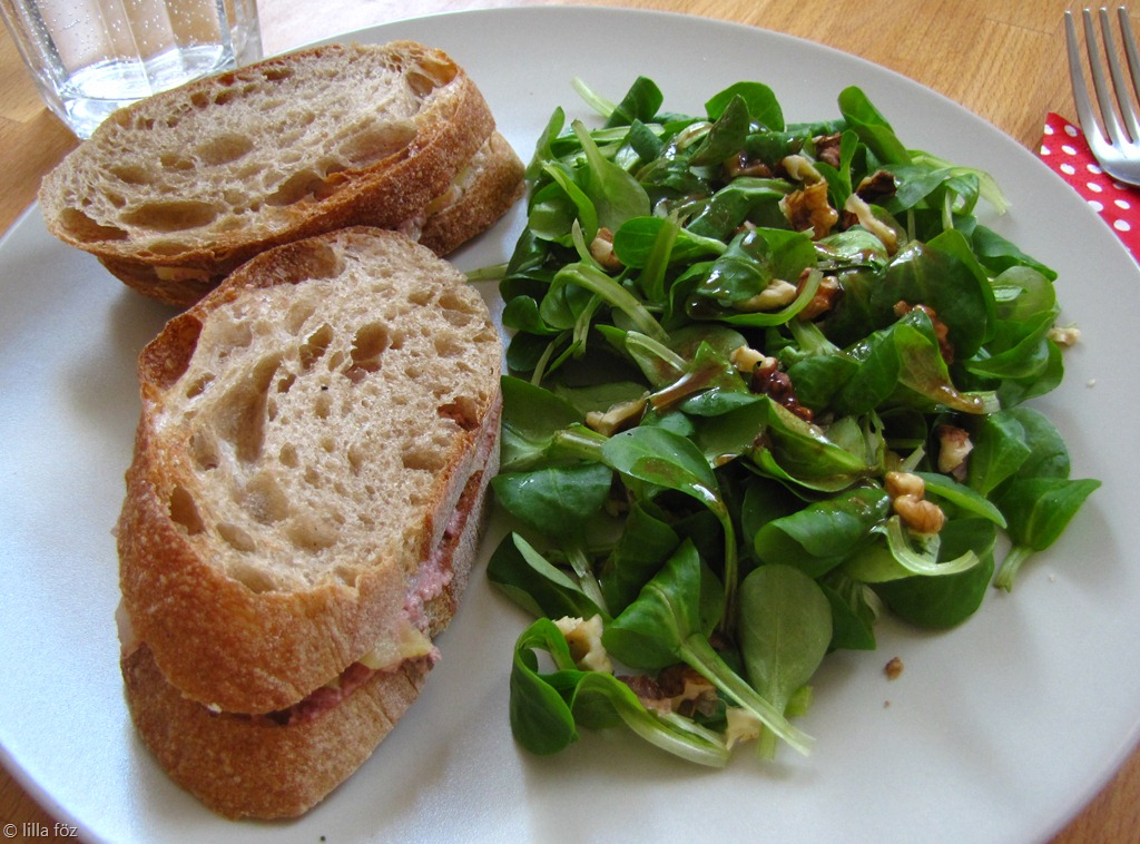 *a recept szerint madársaláta + dió + aszalt áfonya, a képen nincs áfonya, mert nem vagyok túl nagy rajongója az aszalványoknak.