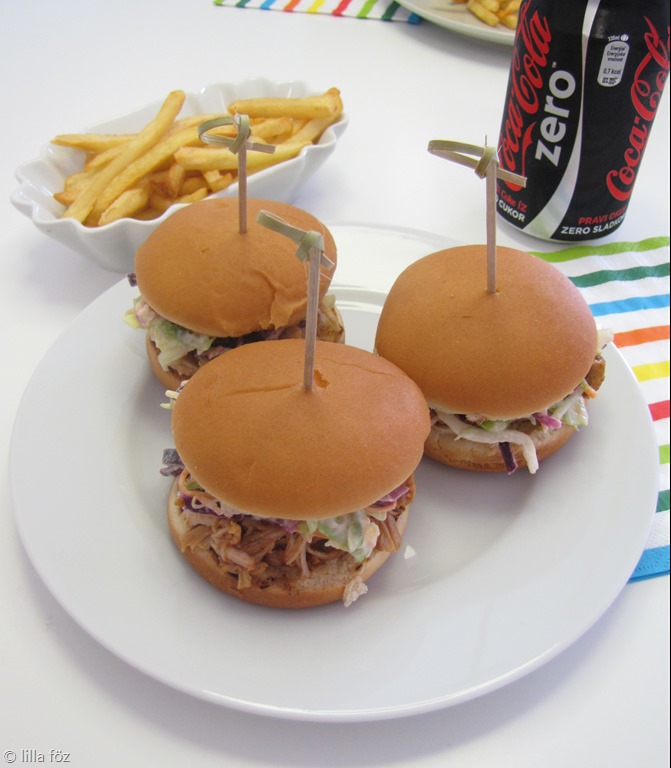 A szendvicsekbe most BBQ szószos csirkehús és káposztasaláta került. Azt leszámítva, hogy türelmesen meg kell várni, amíg a csirke puhára fő, nagyon gyorsan elkészül.