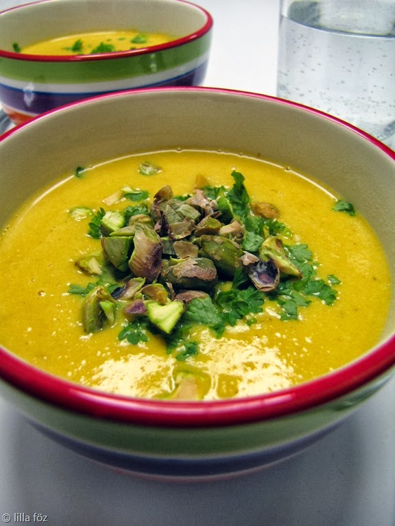 A sokadik sütőtök leves, most almával/körtével. És curryvel. És pisztáciával a tetején.