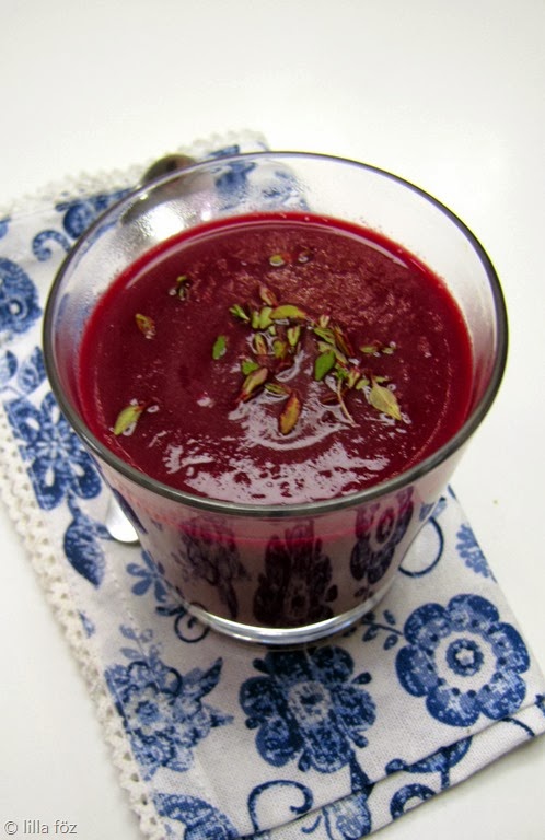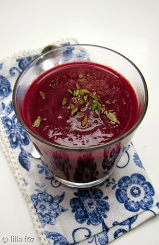 A céklából általában céklakrémet szoktam csinálni, de most rengeteg céklám volt, és érdekelt is ez a leves a Meatless-ből. Úgyhogy megsütöttem az összeset, mellédobtam egy kis fokhagymát, és miután kihűltek megfőztem ezt az elképesztő színű levest.