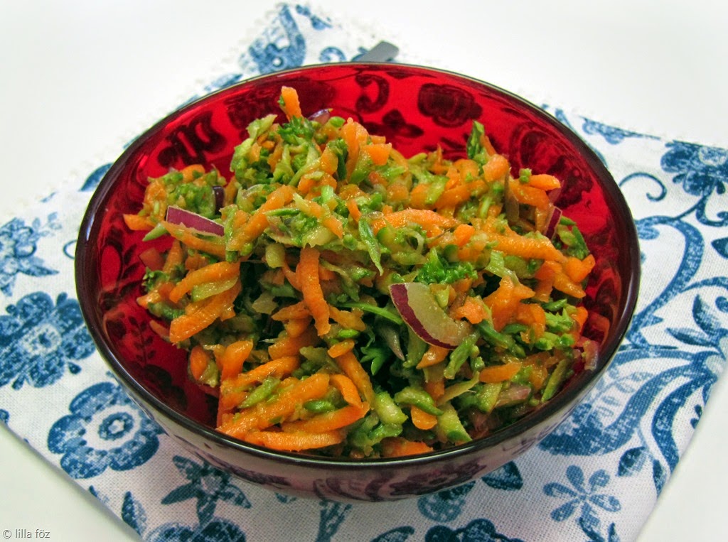 Némi citromos öntet, nyers sárgarépa és zöld spárga. Tiszta tavasz. 🙂