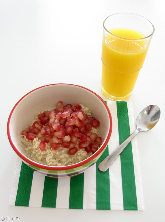 A képen lévő verzió: zabpehely, rizstej, gránátalma.