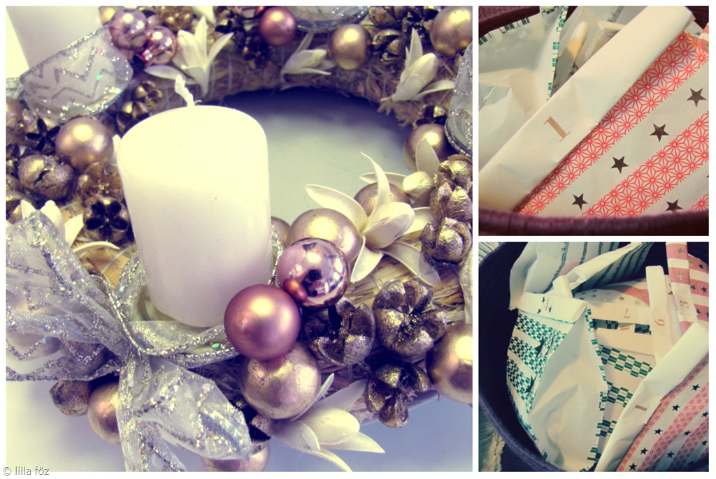 Elkezdődött a karácsonyi készülődés: megcsináltam anyámnak a szokásos adventi koszorúját, és összeraktam magunknak az adventi naptárat.
