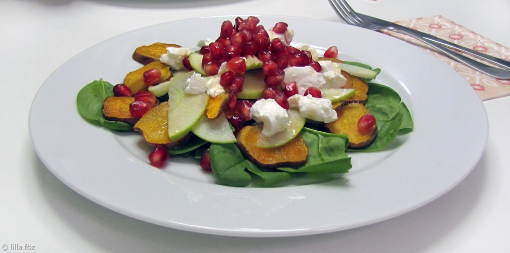 - sült édesburgonya karikák (héjastul vékonyan felszeleteltem, tepsibe raktam, megkentem olívaolajjal, és megsütöttem)