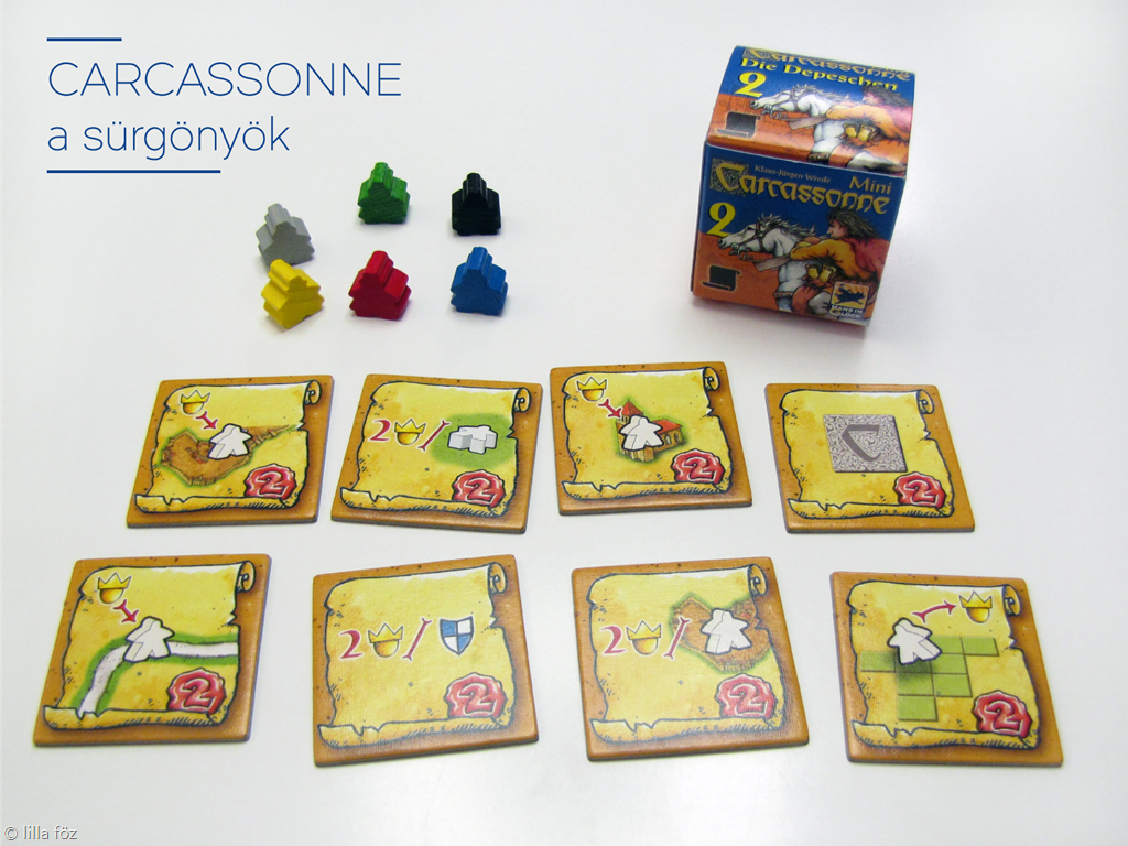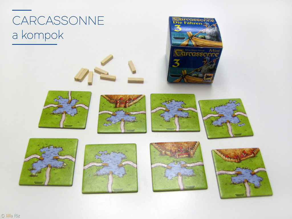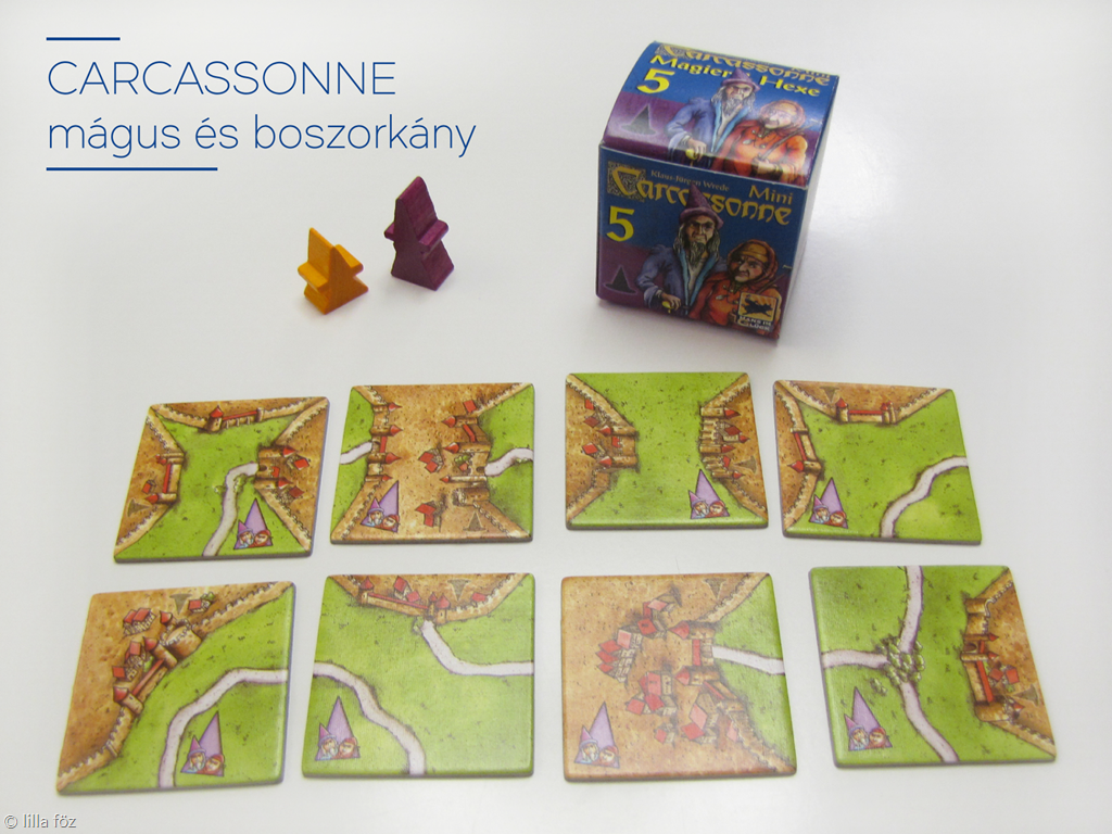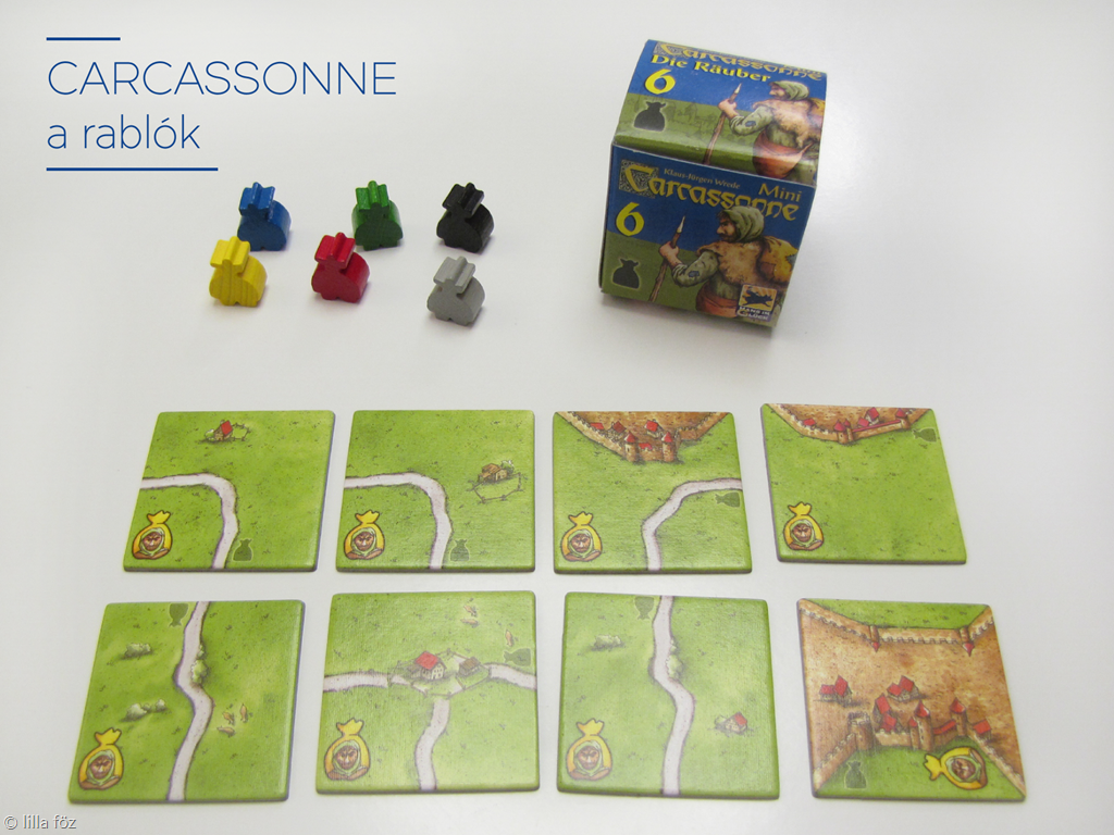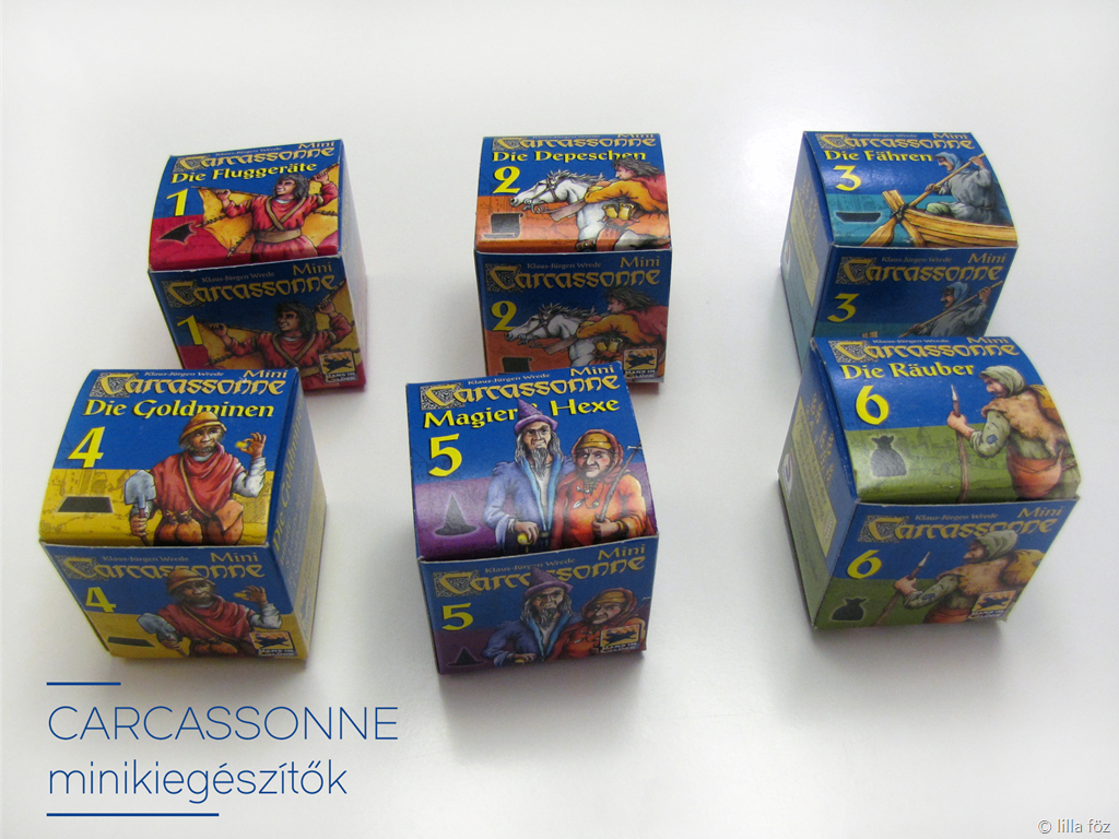 Nagyon szeretem a Carcassonne-t, nálunk abszolút megunhatatlan, még a telefonunkon is lent van, akár a neten át hálózatban játszhatunk vele, vagy egy telefonon, kézből kézbe adva. Az a vicces, hogy a telefonon van egy olyan kiegészítő (sőt ott csak egy kiegészítőm van), “A folyó”, ami az “igaziban” nincs meg. Van viszont egy csomó másik. Például ez a hat minikiegészítő, ami együtt már hetet ad ki, mert a hetedik 2-2 laponként szét van osztva a többibe. Trükkös vásárlás-ösztönző, mi?