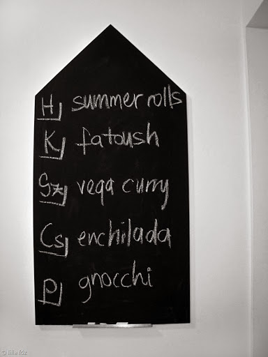 Régóta akartam egy táblát, amire krétával írogathatok. Egyrészt nyilván minden csacskaság kell, ami a DIY meg lakberendezős oldalakon lépten-nyomon megfordul, másrészt tök jópofa, és a fekete jól néz ki a fehér falon.