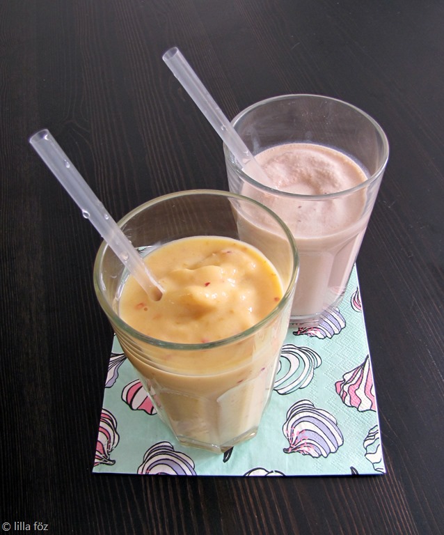 Kicsit halvány a képen a tejcsokis shake, de tényleg csokis és nem epres, aminek sokkal inkább kinéz. Egy tejes, egy vegán. Mindenkinek amit szeret.