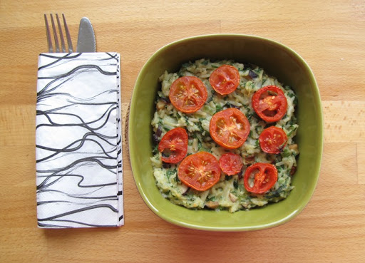 Nyilván működik a recept tejjel, vajjal és sajttal is, de nálunk beköszöntött a tejmentes éra, úgyhogy anélkül kellett kreálni valami gyorsat a hűtőben lévő dolgokból.