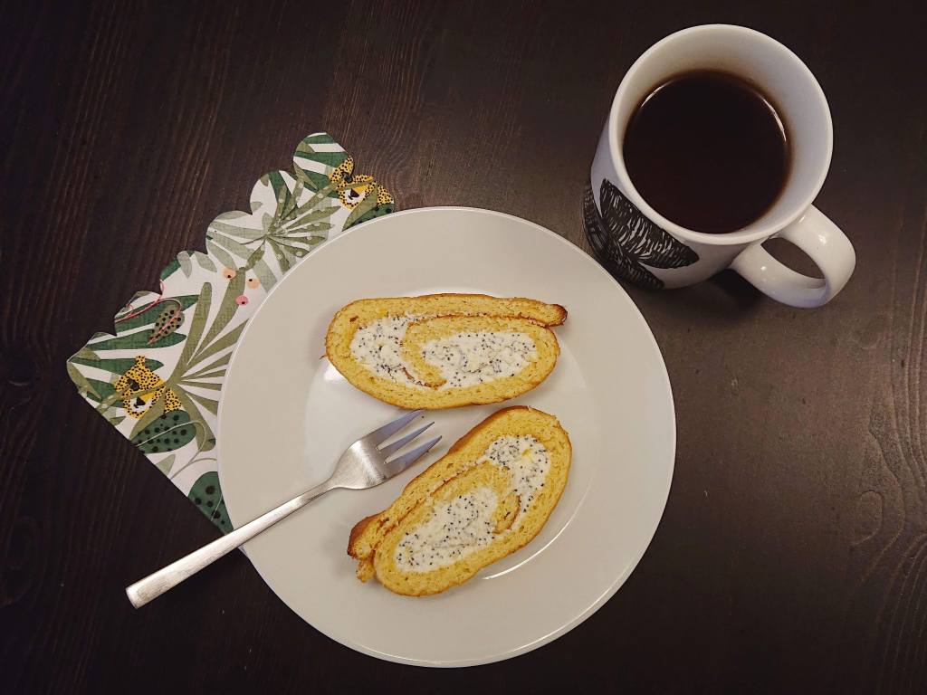 A kihűlt krémet, a hideg piskótára kenem, feltekerem és tálalás előtt minimum egy órára, fóliába csomagolva beteszem a hűtőbe.