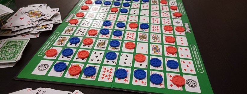 Hosszabb társasjáték-estek elején szoktuk elővenni a Sequence-t, afféle bemelegítésként. (kezdés délután fél hatkor, és nyomjuk kifulladásig :-)) A játék nagyon egyszerű, mindenki kezében van néhány lap (klasszikus franciakártya csomag, jokerek nélkül), és előtte egy kupac zseton. A táblán az eldobott lapnak megfelelő mezőre le lehet tenni egy zsetont, majd húzni egy új lapot. Az nyer, … Bővebben: Társasjátékok 14. rész – Sequence
